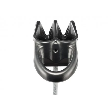 - Trou de déblocage permettant de donner du mou progressivement avec un simple mousqueton, lorsque l’appareil et sous tension.