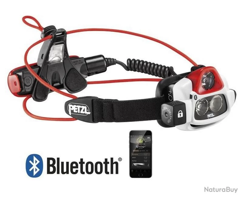 Lampe frontale multifaisceau ultra-puissante, rechargeable et connectée par liaison Bluetooth® Smart (fonction désactivable) grâce à l’application MyPetzl Light pour Smartphone et tablette (téléchargeable gratuitement sur Apple Store et Google Play) :