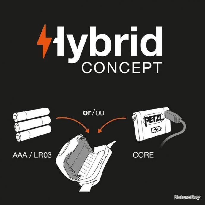 - – construction HYBRID CONCEPT : livrée avec trois piles, TIKKINA est aussi compatible avec la batterie rechargeable CORE,
