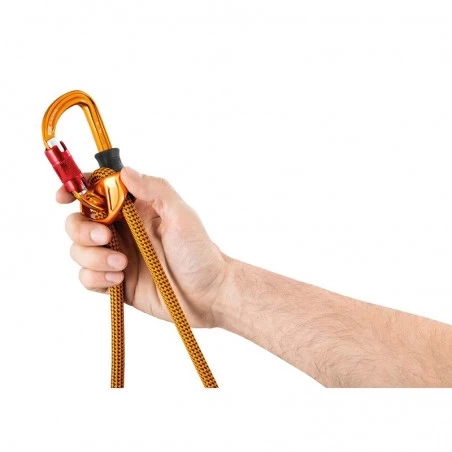 Le bloqueur Adjust offre un réglage simple et rapide, grâce à sa forme ergonomique. Le mousquetonnage est facilité par le maintien des connecteurs en position, grâce à la bague Tanga sur le brin réglable et à la gaine plastifiée sur le brin fixe.