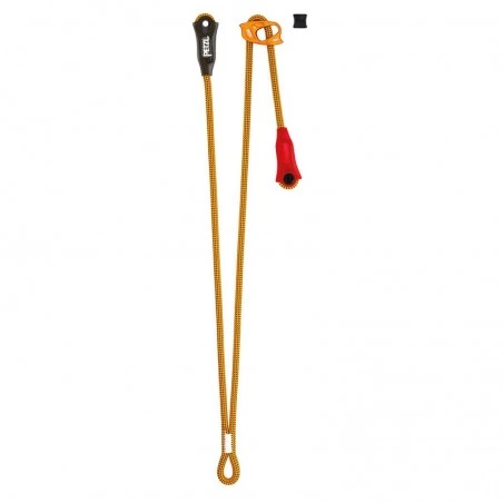 - En progression sur une main courante : brin fixe et brin réglable de la même longueur permettant un assurage facilité lors des passages de fractionnements.