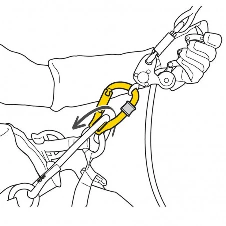 Poulie mousqueton avec l’ouverture du doigt opposée à la poulie : facile à installer sur les points d’ancrages et appareils.