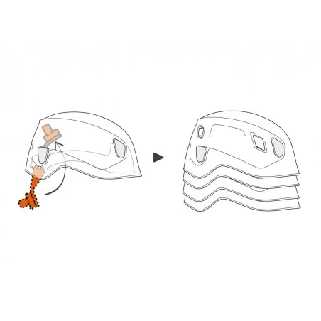 - Système FLIP&FIT permettant d’escamoter le tour de tête dans le casque, pour le protéger lors du stockage et du transport. Ce système inclut un réglage du tour de tête facile à ajuster par l’encadrant