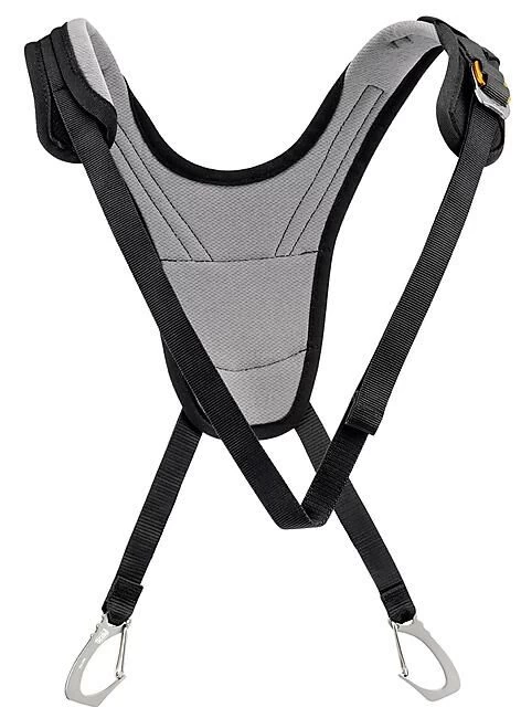 Bretelles destinées au harnais Sequoia SRT et conçues pour reprendre la charge de la ceinture et la répartir au niveau des épaules pour améliorer le confort. Elles se connectent sur le point d’attache ventral du harnais et les deux passants situés à l’arrière de la ceinture.