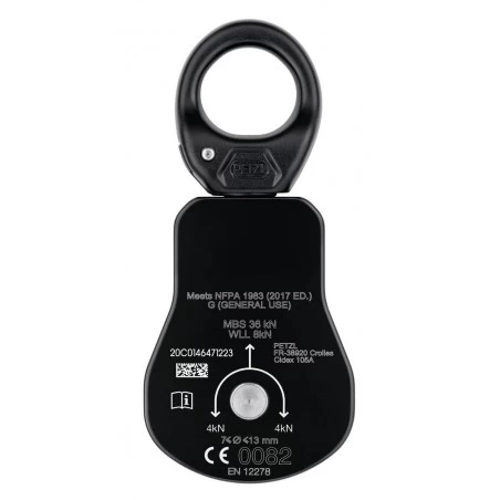 Le réa de gros diamètre sur roulement à billes étanche lui procure un excellent rendement. Les manipulations sont facilitées, grâce à l’émerillon permettant d’orienter la poulie sous charge et de connecter directement mousquetons, cordes ou sangles.
