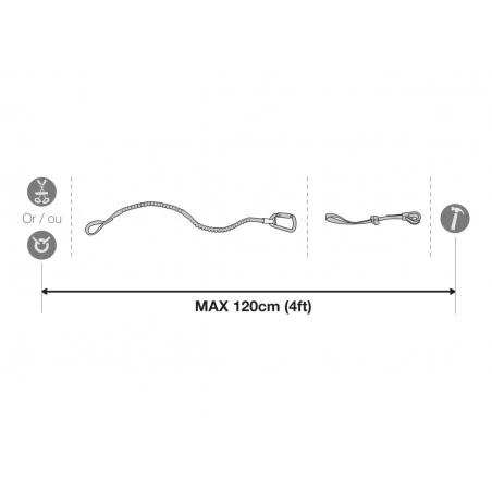 - Longueur maximale de la chaîne de résistance : 120 cm (sangle extensible TOOLEASH + interfaces TOOLINK)